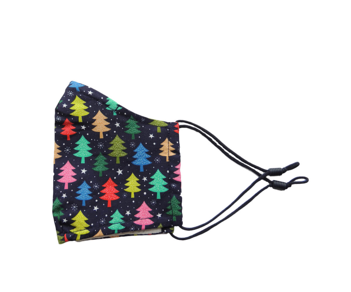 Máscara de tecido reutilizável estilo natalino composta por três camadas: