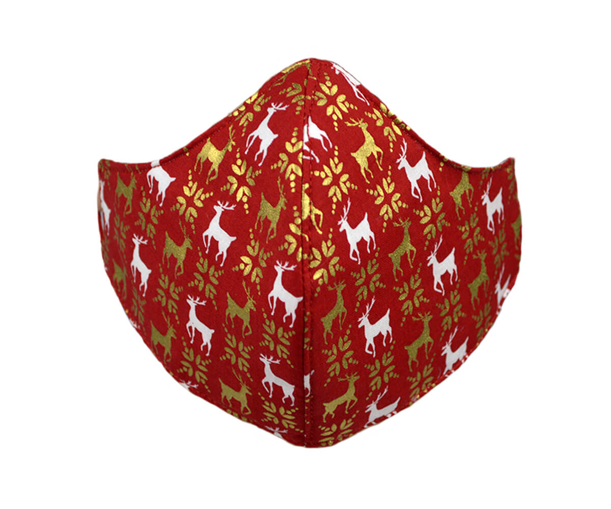 Máscara de tecido reutilizável estilo natalino composta por três camadas: